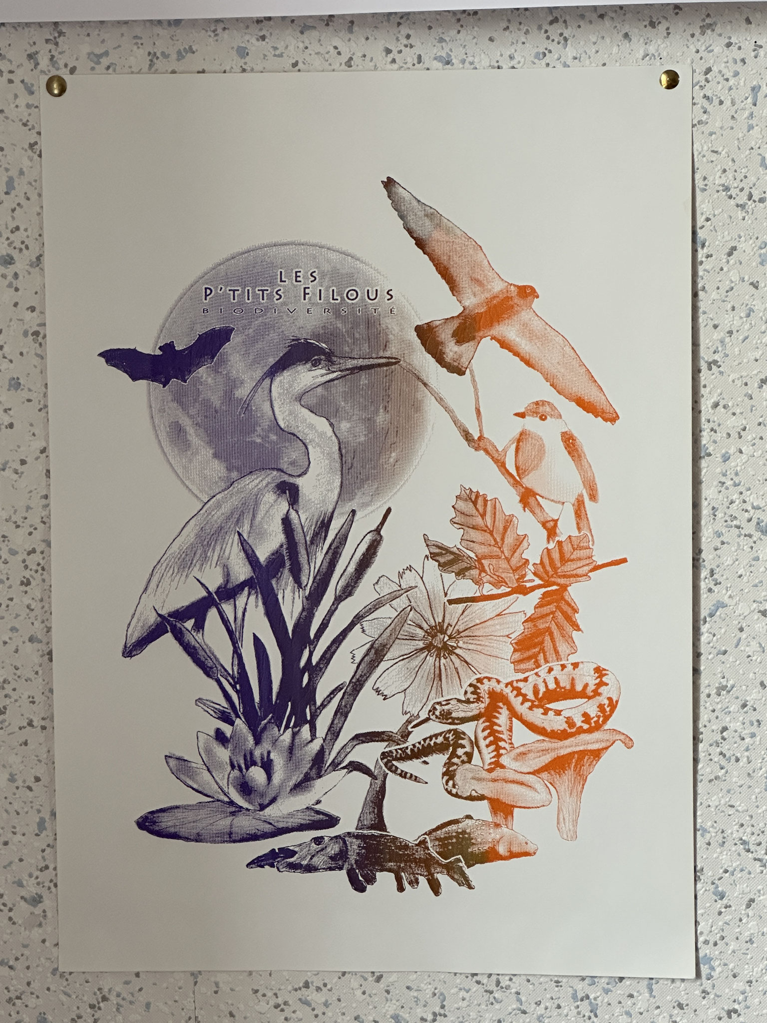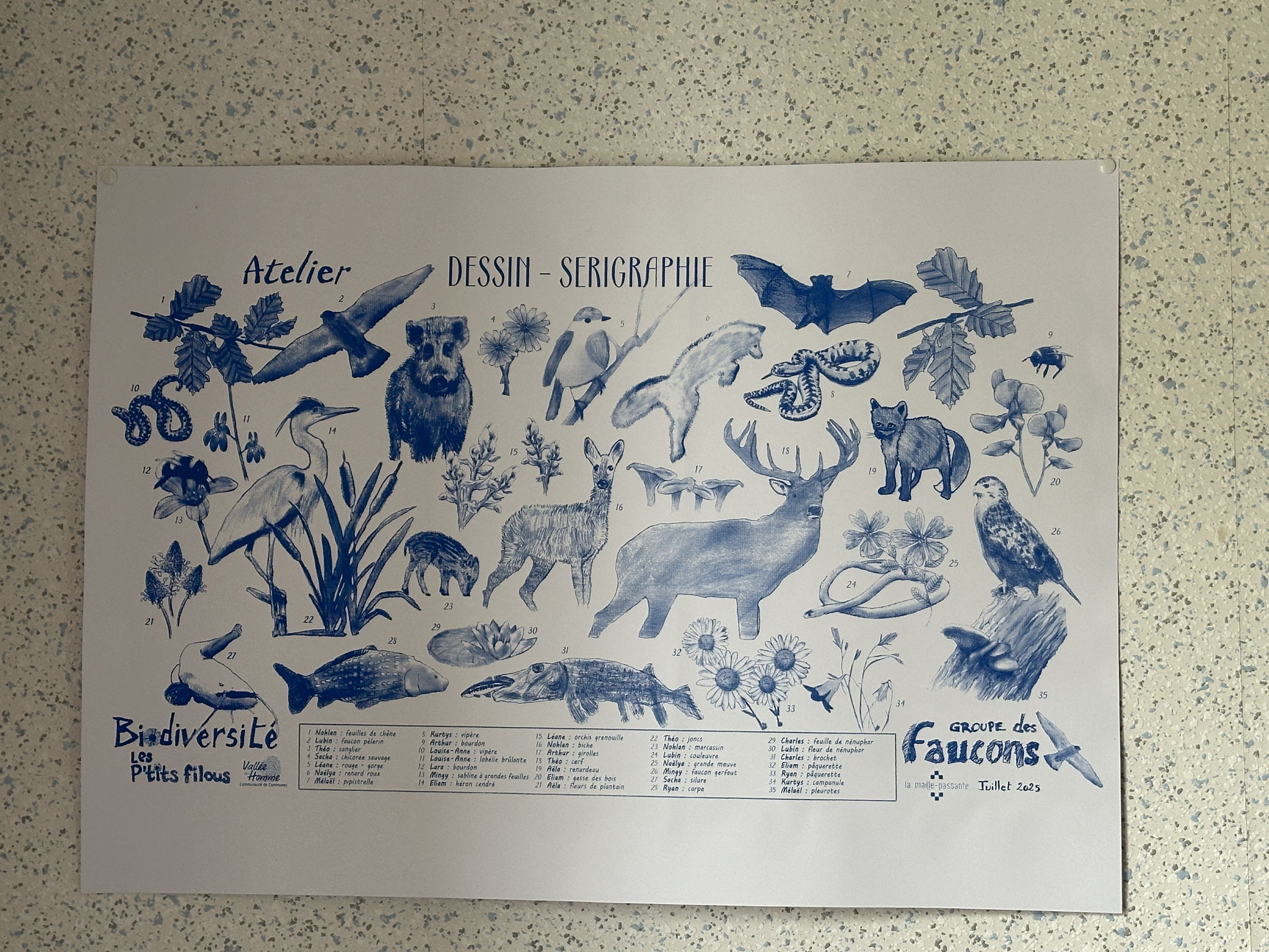 Atelier sérigraphie autour de la biodiversité du territoire avec l'entreprise La Maille Passante. Bravo aux artistes !