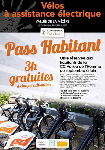 23 vélos à assistance électrique sont proposés à la location en libre-service dans les centre-bourgs du Bugue, des Eyzies, de Rouffignac, de Montignac-Lascaux et récemment à St-Léon/Vézère.